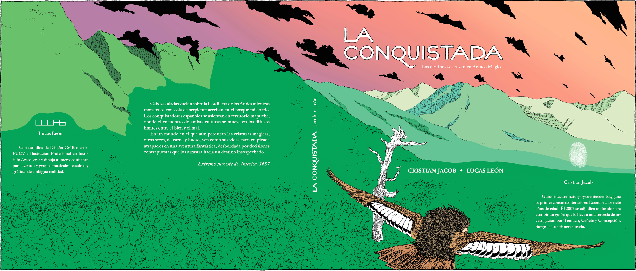 Cristian Jacob, the writer, approached me to work on his book “La Conquistada”, where I was responsible for its cover and the internal illustrations, which include 11 objects and details, 6 landscapes, and 4 characters.